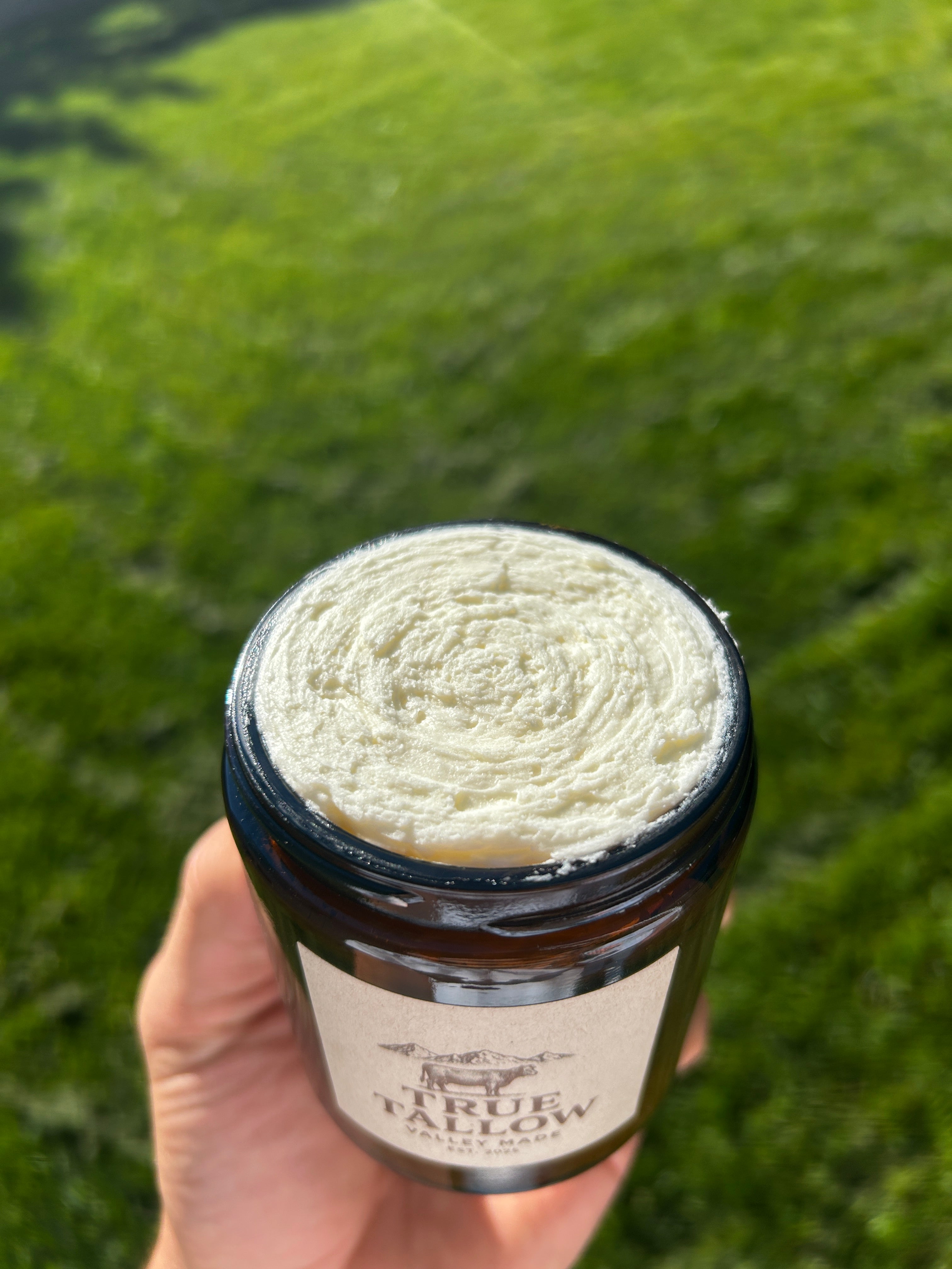 Beef tallow is the natural fat from cows that’s whipped or blended into a smooth cream. It works as a super-rich moisturizer, helping to soften and protect dry skin.